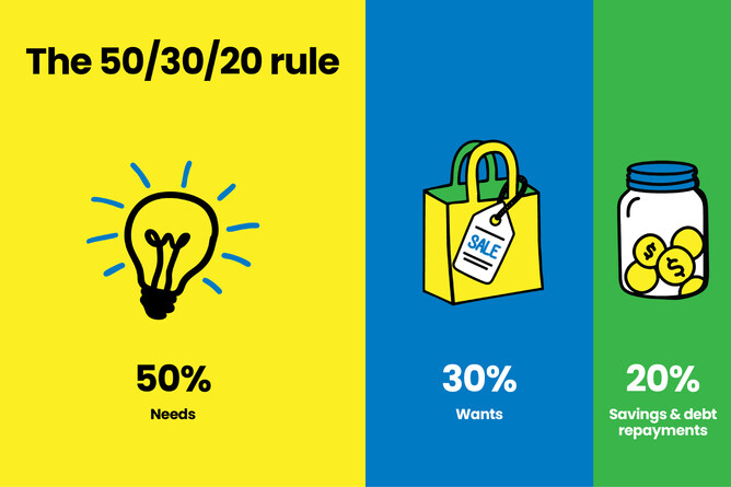 A great rule for a budget is 50/30/20 - 50% for needs, 30% for wants, and 20% for savings and debt repayment.